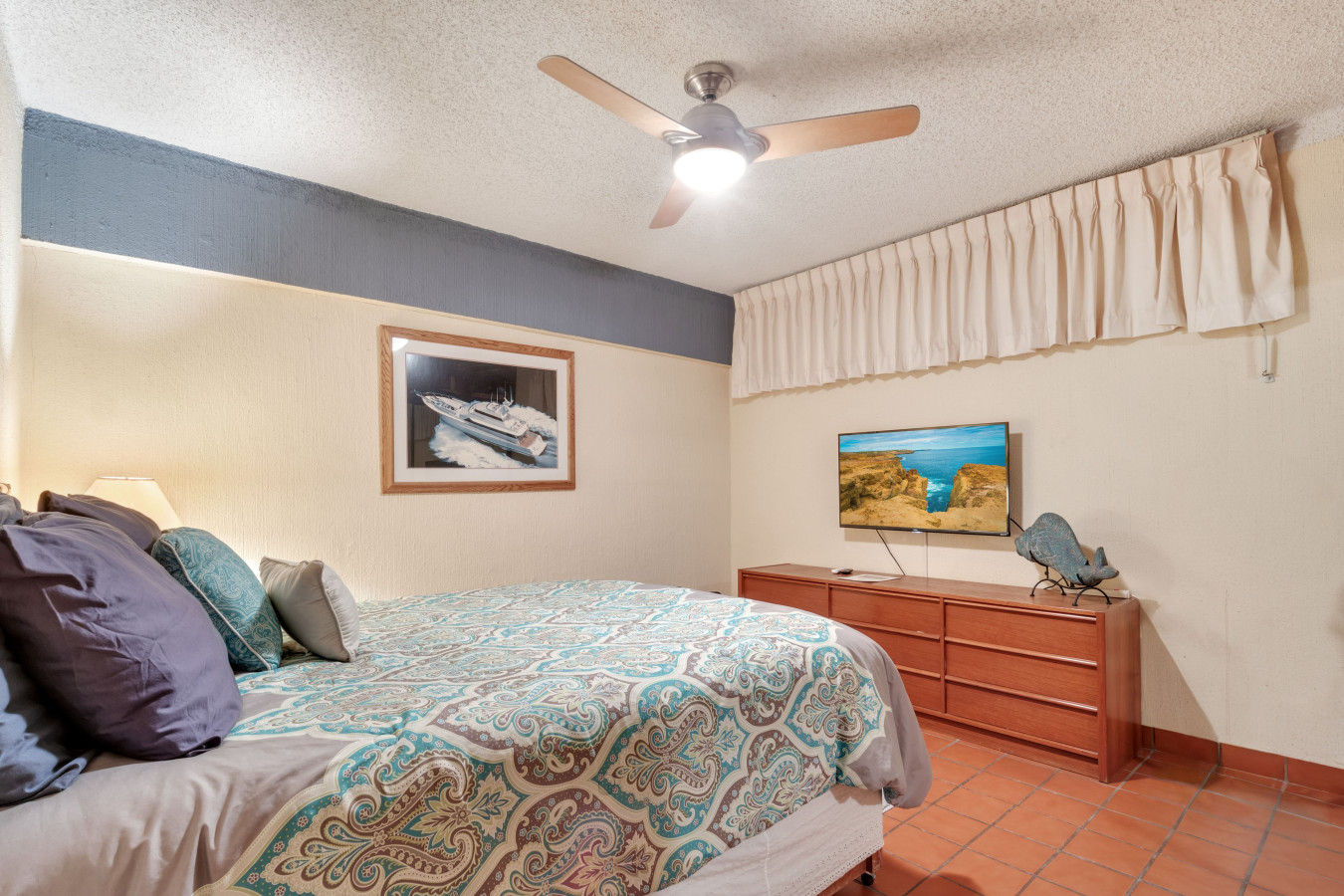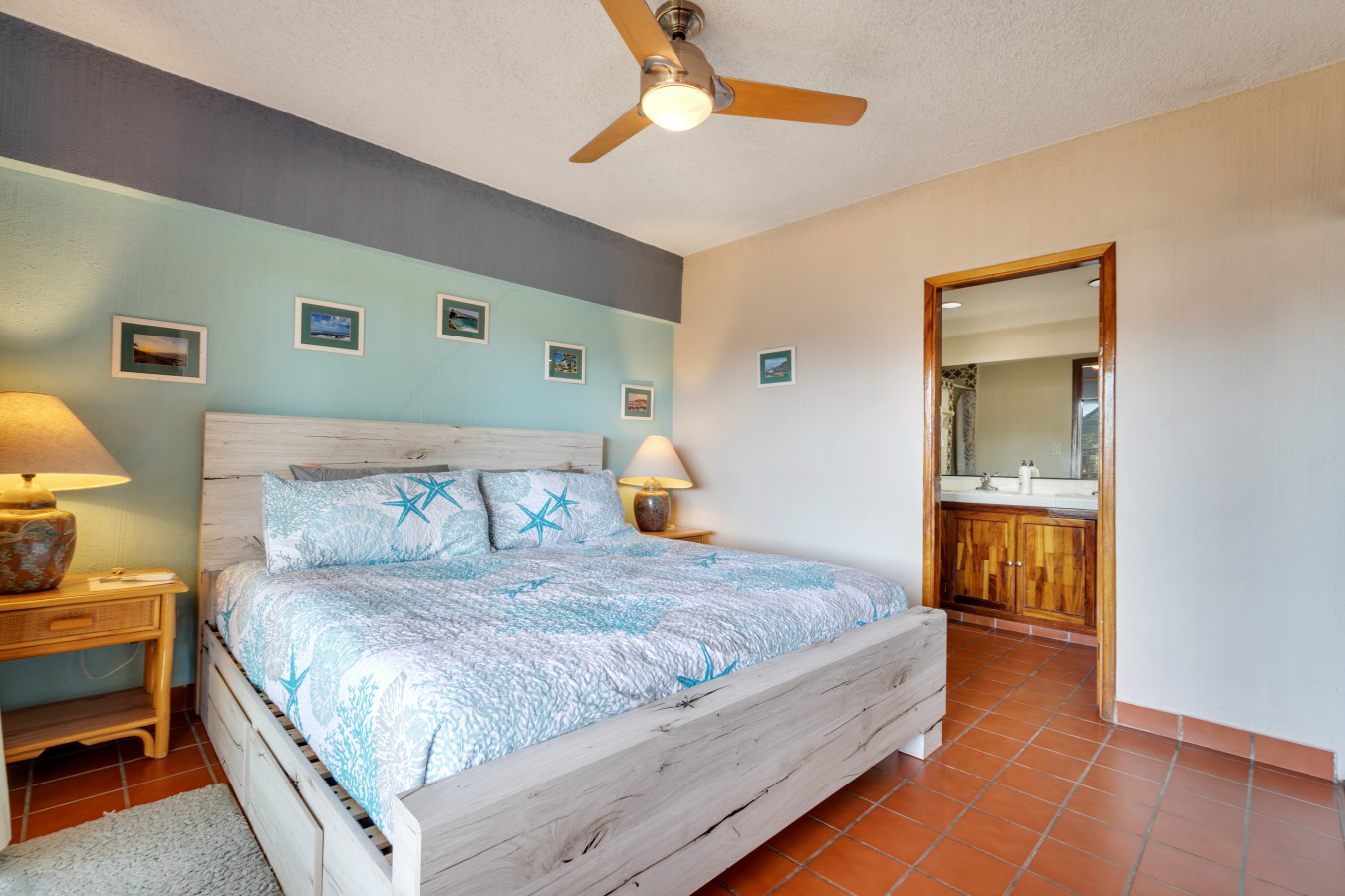 2 Bedroom condo. Main bedroom has a king size bed and an en-suite. The second bedroom has a queen size bed. Guests share the 2nd bathroom. Fully stocked kitchen. Living room. Patio with bbq and seating for 4 people. TV in living room and 2nd bedroom. Dining area for 6 inside by kitchen bar.