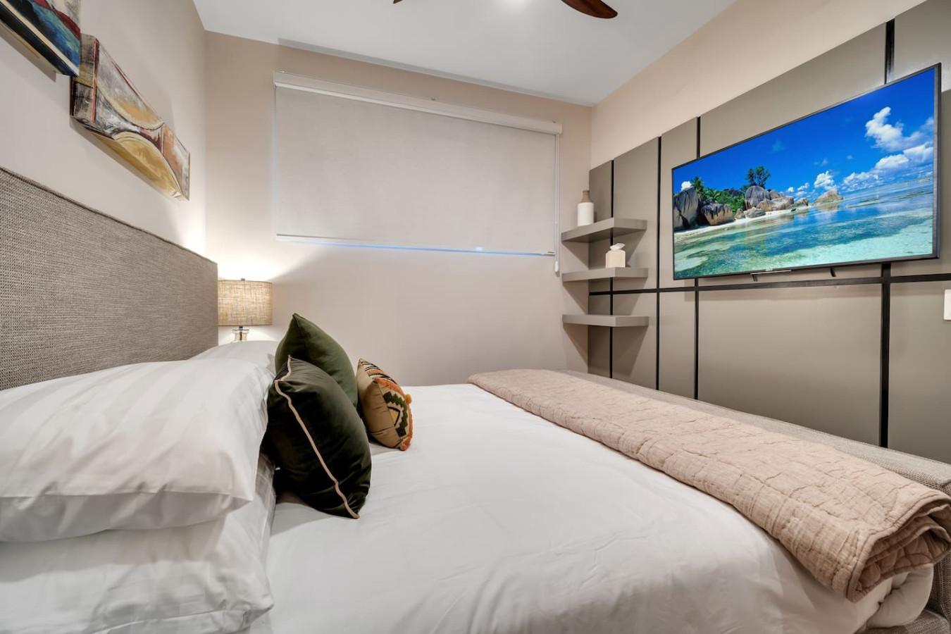 Inside, you'll find a fully equipped kitchen where you can prepare delicious meals during your stay. Stay entertained with a smart TV and use the laundry center for convenience. The unit also features beautiful beach-style decor that adds to its charm.