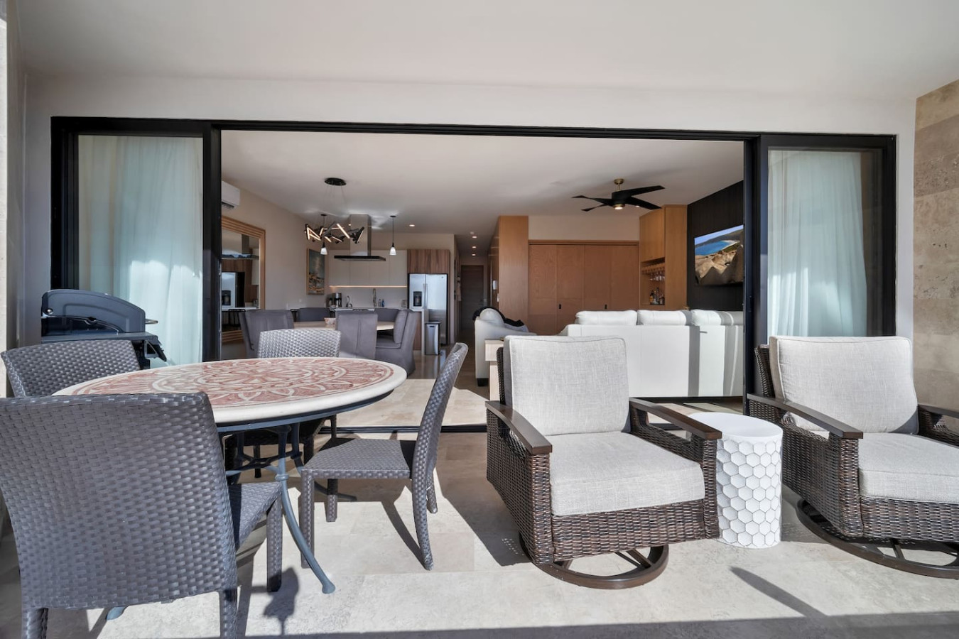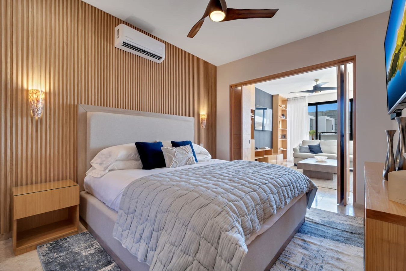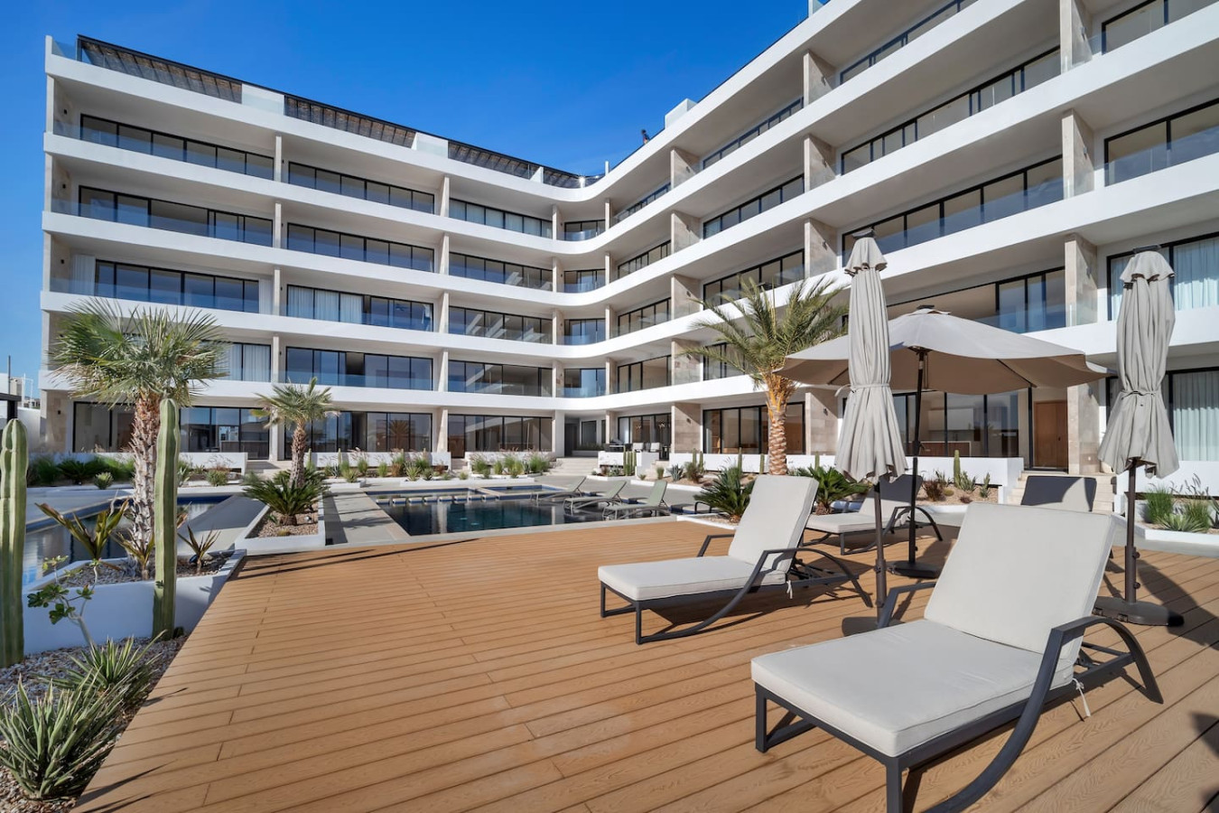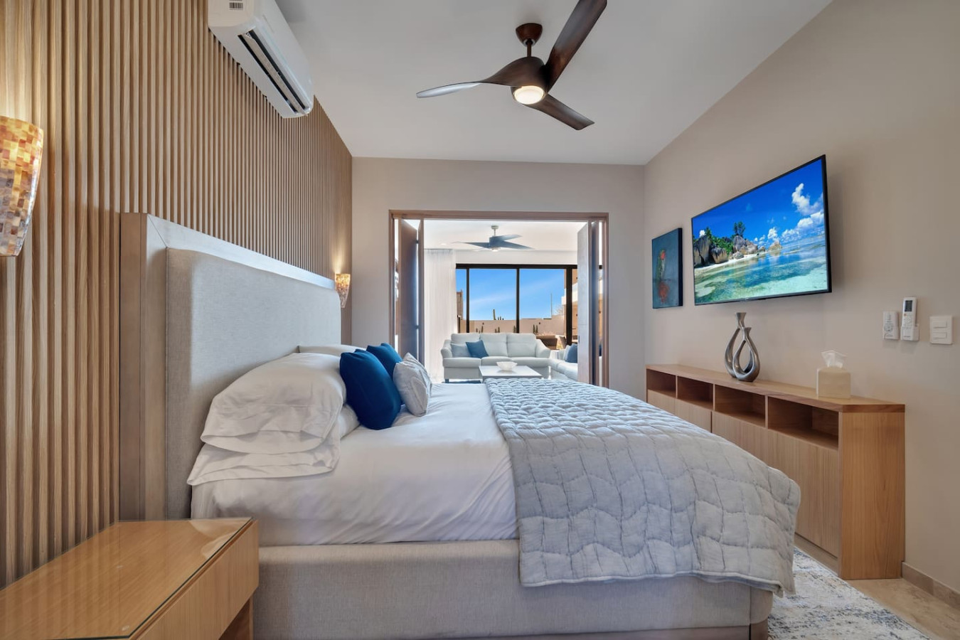 Welcome to Vistas del Tezal, an extraordinary two-bedroom apartment in Cabo San Lucas with an amazing pool area right outside your back door. This new and beautifully decorated unit offers a private terrace, a fully equipped kitchen, and air conditioning in all rooms. With its multiple pools, ocean view rooftop, and proximity to attractions like Las Viudas, Chileno Bay, Santa Maria Bay, the Marina of Cabo San Lucas and Medano Beach, Vistas del Tezal is perfectly located for your beach getaway.
