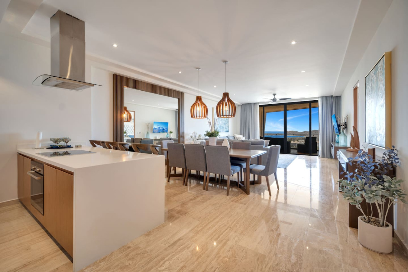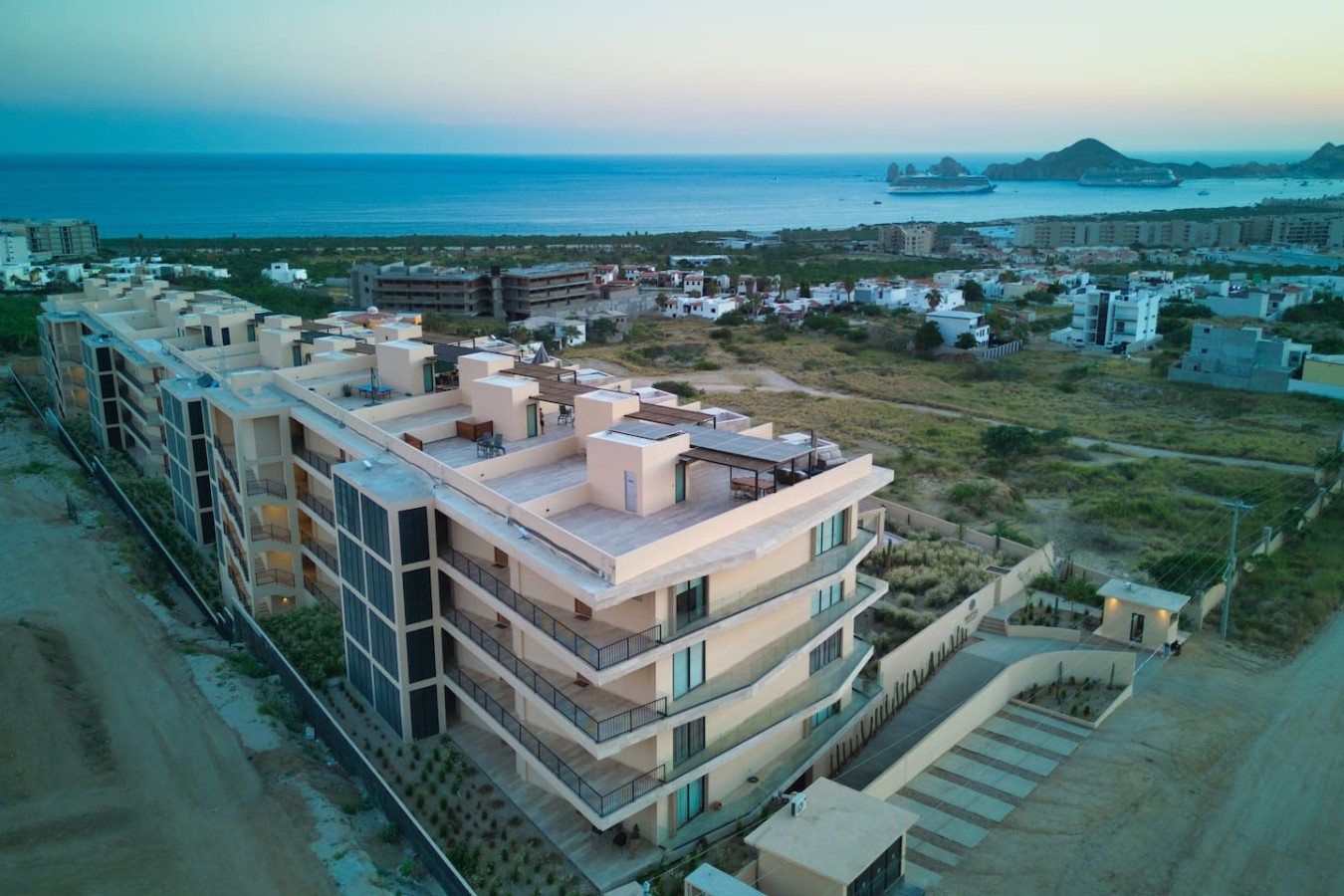 Mistiq Los Cabos is an exclusive condominium complex north of downtown Cabo San Lucas. The condo showcases an airy open‑plan living area, gourmet kitchen, floor‑to‑ceiling windows and ocean‑view terraces. Residents enjoy resort‑style facilities including two infinity pools, sun deck, modern gym, clubhouse, solarium, lush gardens, covered parking and 24/7 security . Located in the coveted Cabo Corridor near beaches, marina and “El Arco,” it blends privacy with lifestyle convenience.