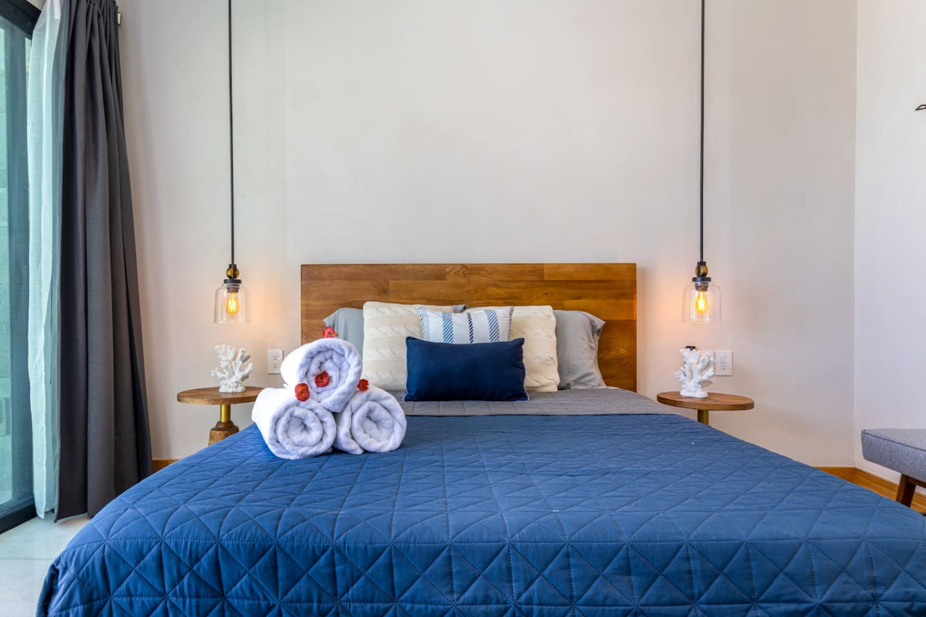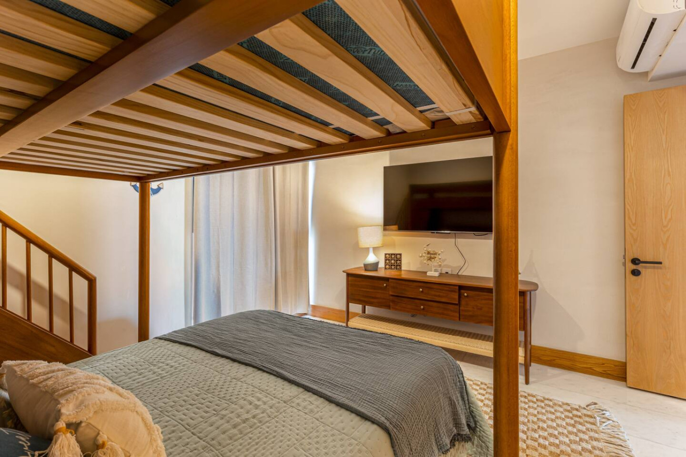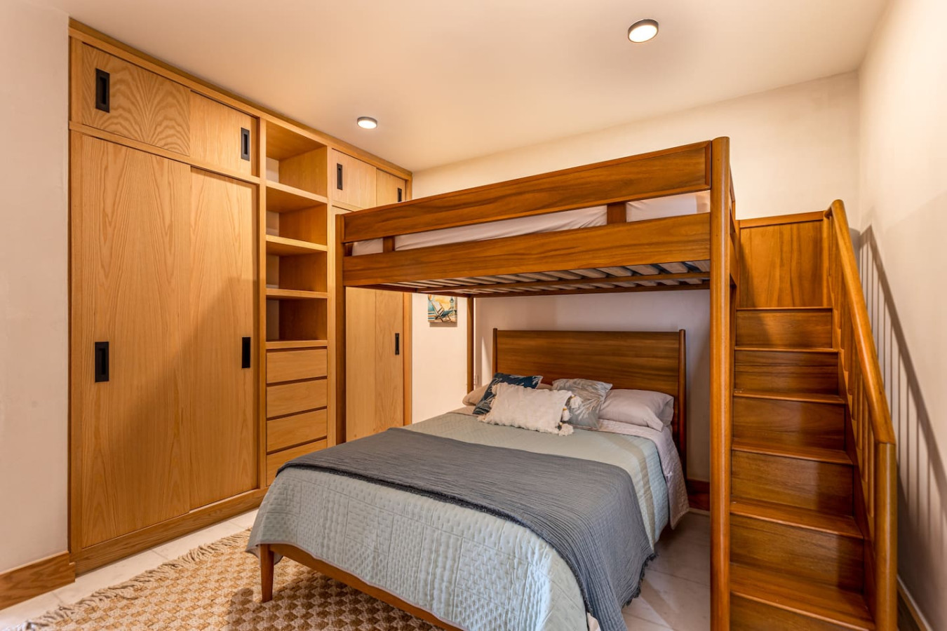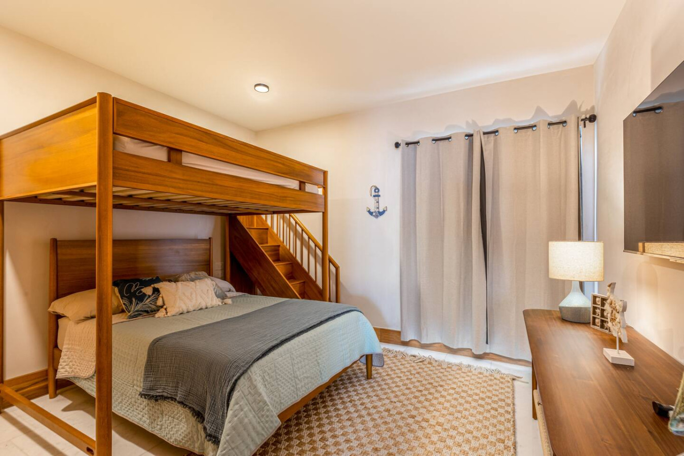 • One queen-size bed and one bunk bed