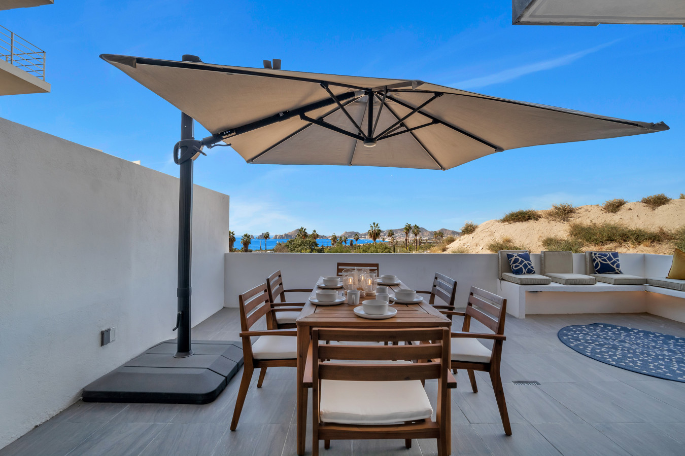 Welcome to Satus, an extraordinary two-bedroom apartment in Cabo San Lucas with breathtaking views of the iconic arch. This new and beautifully decorated unit offers a private terrace, a fully equipped kitchen, and air conditioning in all rooms. With its infinity pool, ocean view courtyard, and proximity to attractions like Playa de Las Viudas, Chileno Bay, Santa Maria Bay, the Marina of Cabo San Lucas and Medano Beach, Satus is perfectly located for your beach getaway.