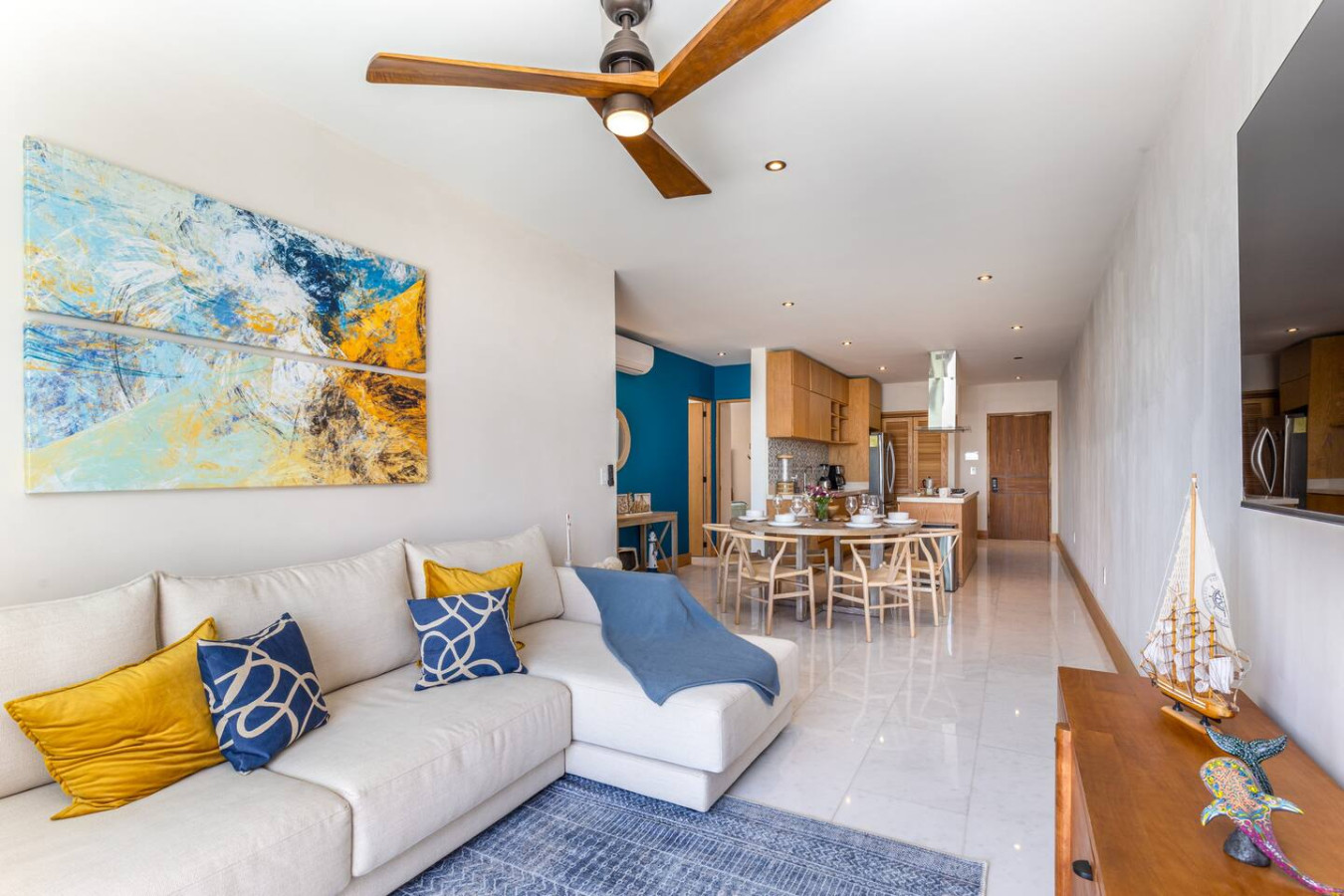 • Fully equipped kitchen, smart TV, and laundry center