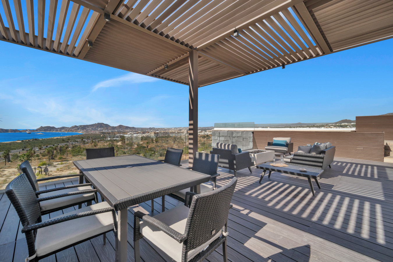 • Roof-top terrace with an infinity pool, fire-pit, and ocean view