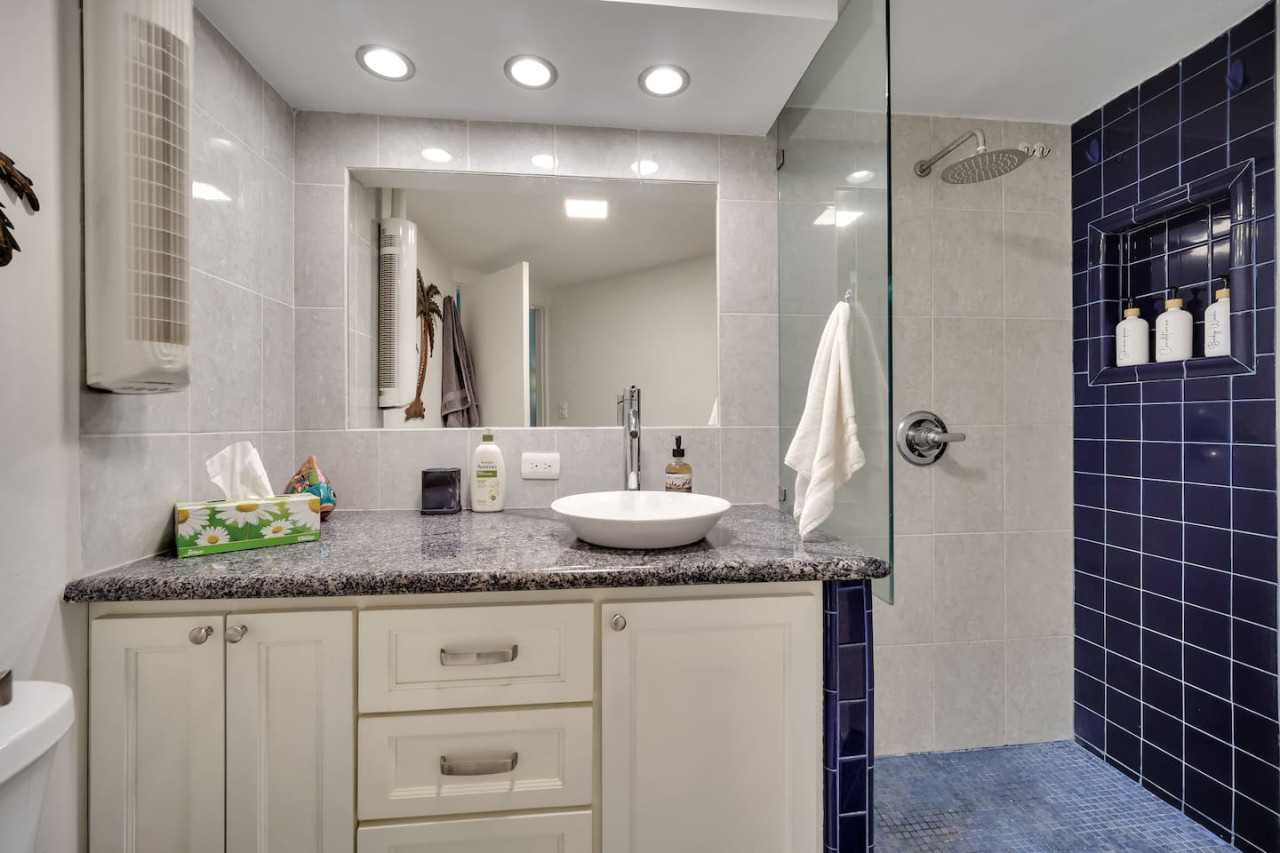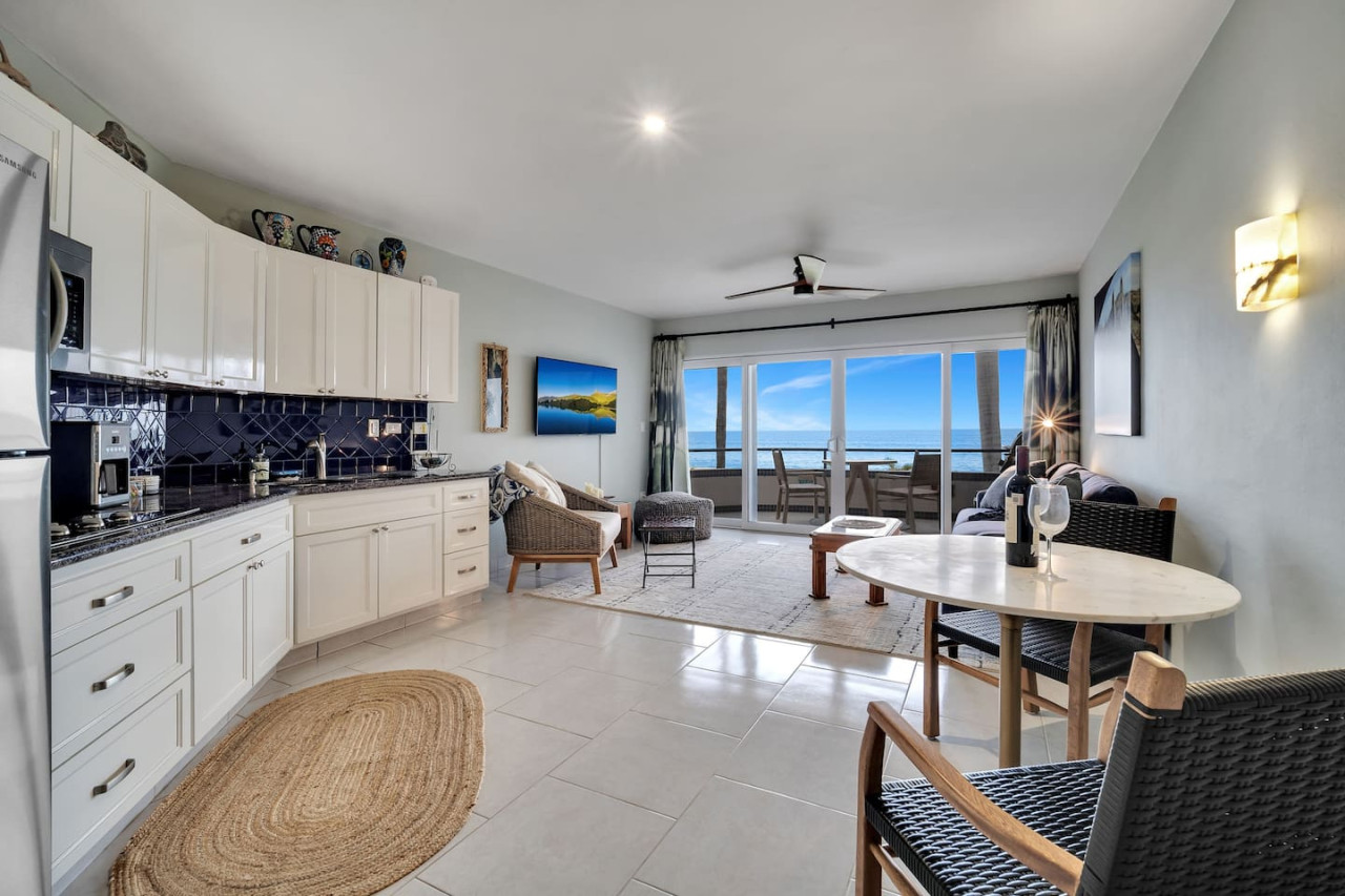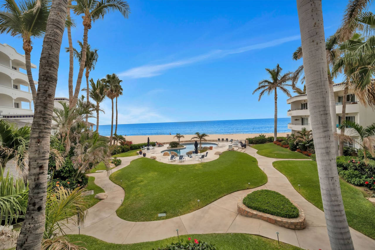 When you arrive you walk a short cobblestone path through lush plantings with orchids and staghorn ferns, take one easy set of stairs and you’re in a perfect 2nd floor condo unit with a view that has it all…...beautifully landscaped grounds, tall palms, artistically designed heated pool and immediately past this all the sand, surf and ocean one could want! Imagine only 25 steps from the building to the pool, 5 more to the beach and who counts after that?