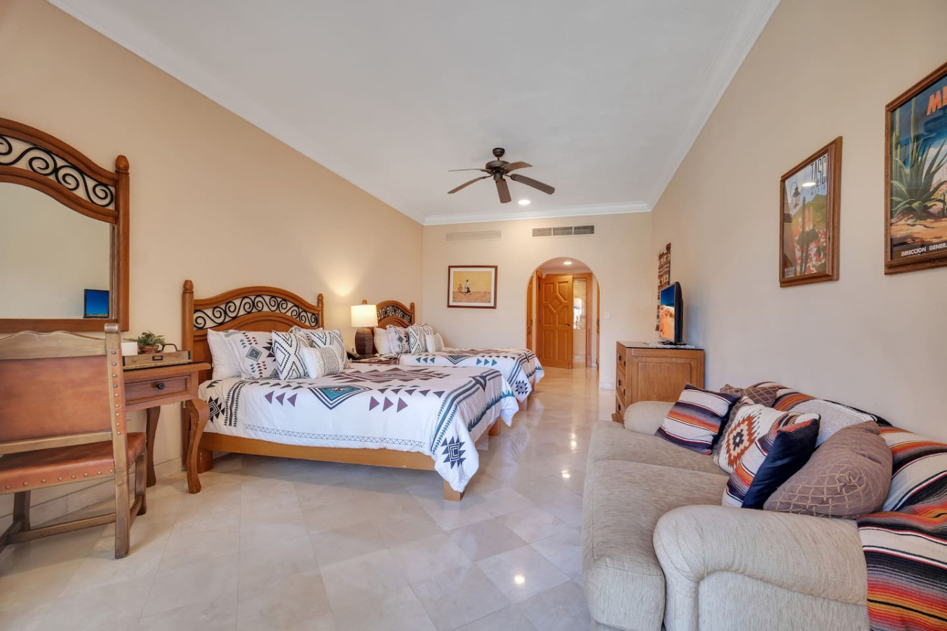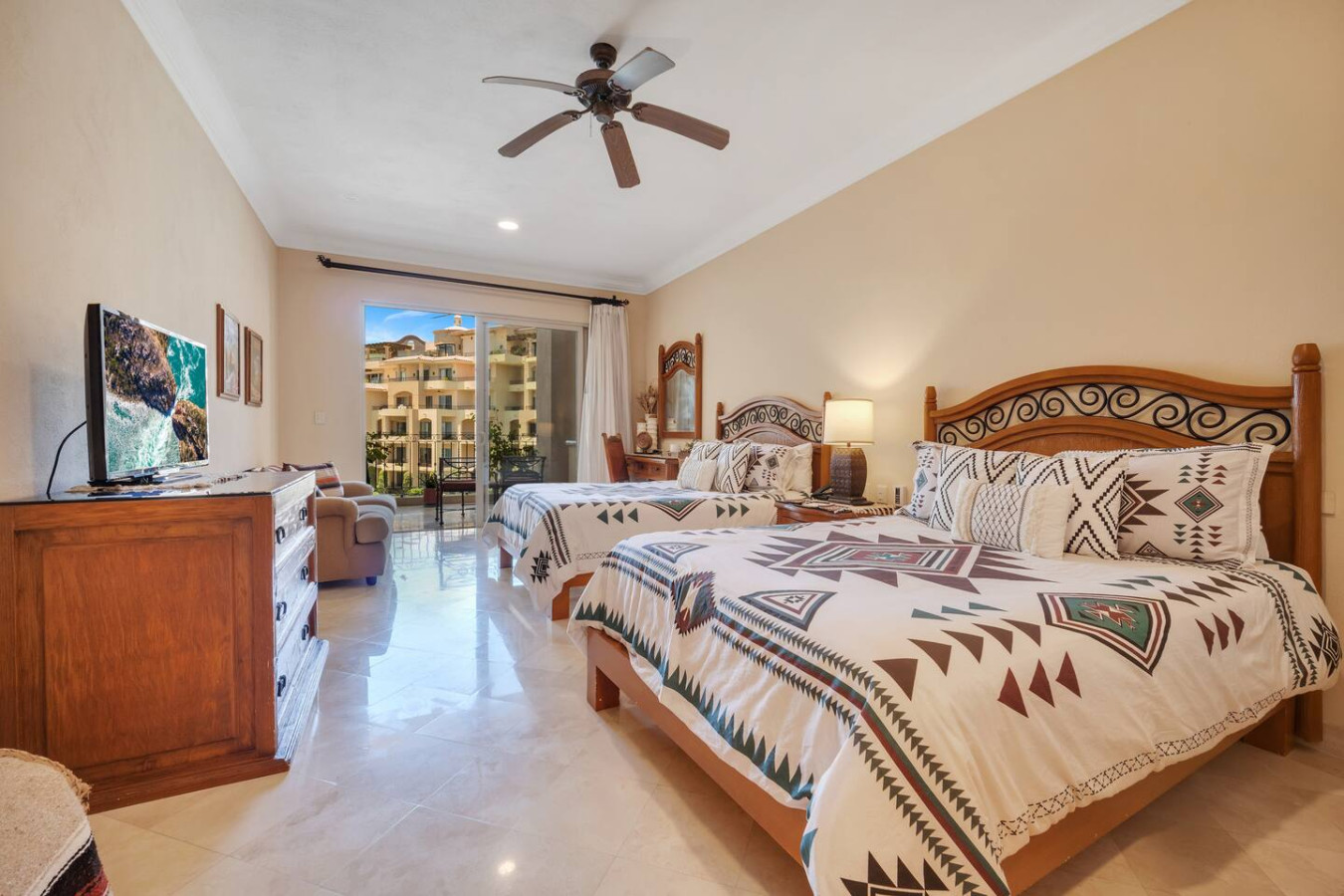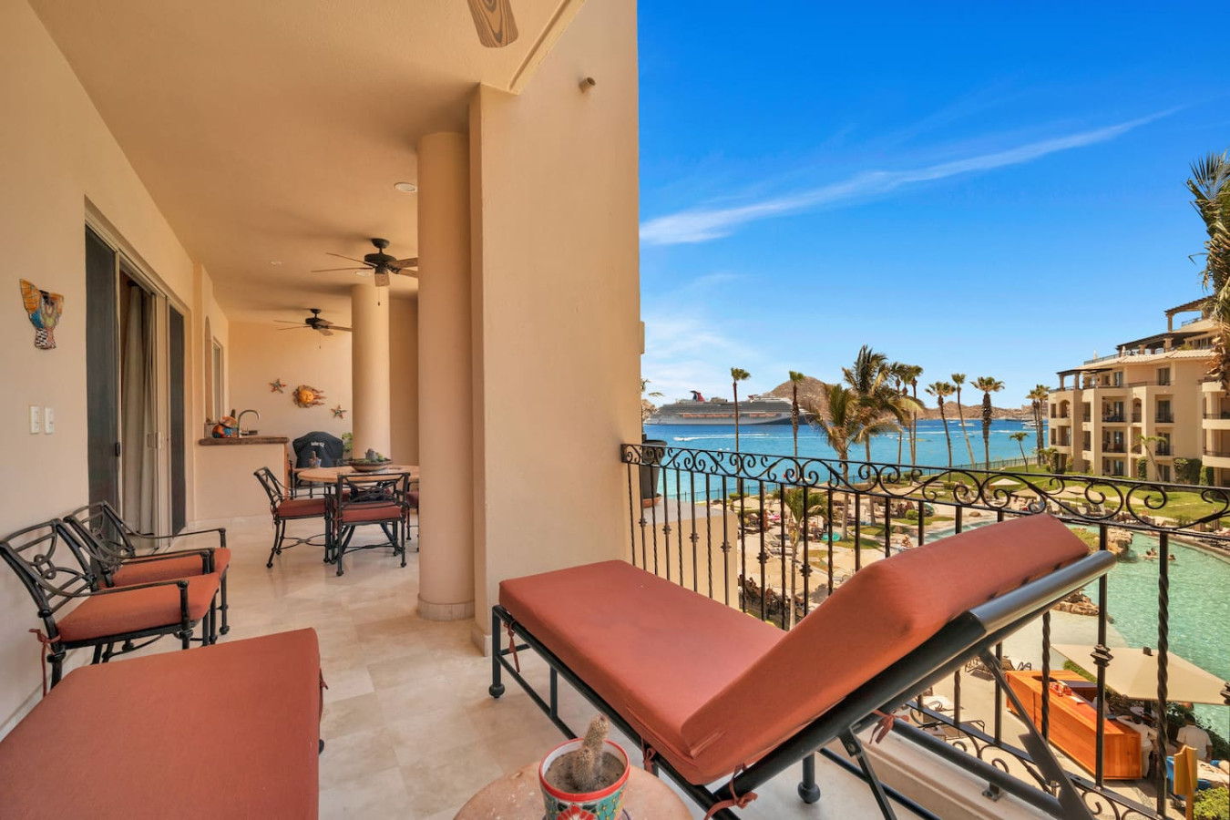 Villa La Estancia 1302 - Premium Ocean View. Sleeps up to 6 people comfortably with 3 beds and 3 full baths. This recently remodeled 2 bedroom (1 king & 2 Queens) condo has amazing ocean views. Enjoy the 5 star amenities of Villa La Estancia, which is located on the famous Medano Beach. You will have over 2,300 sq. ft. of indoor/outdoor living space to relax. Enjoy the 8 restaurants located onsite, market, two beautiful oversized pools, swim up bar, 5 jacuzzis, fire pits and much more!