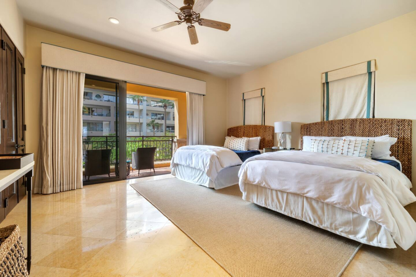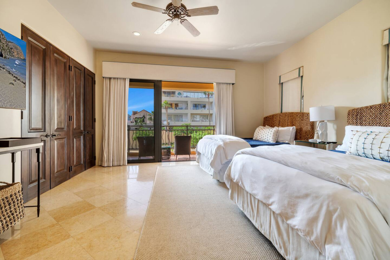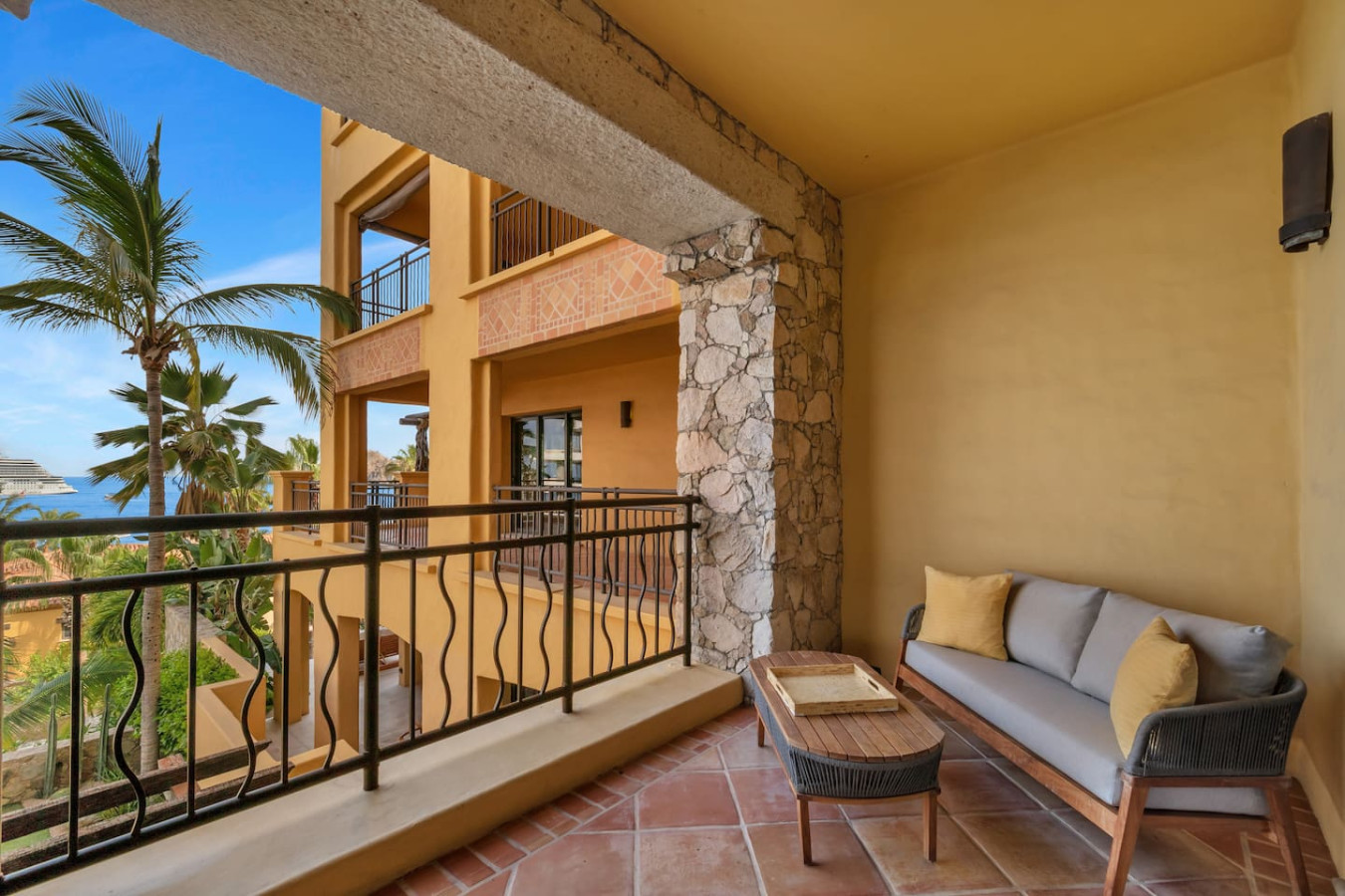 The perfect getaway at The Hacienda Beach Club 1201 awaits you in this beautifully decorated 3 BD & 3 1/2 BA fully furnished condo on Medano Beach. The Villa also features one smaller bunk-room which includes a half bathroom. There is a total of 6 beds that sleep 8. The Residence offers a gourmet kitchen, ocean view main suite, large patios and flat-screen TVs throughout. Enjoy the views of Land's End and the Sea of Cortez with direct beach access to the only year-round swimmable beach in Cabo.