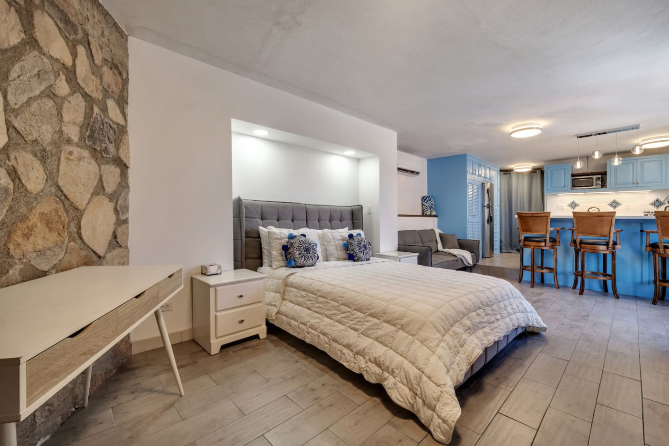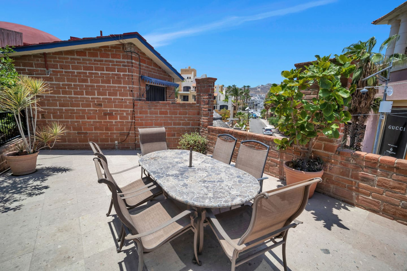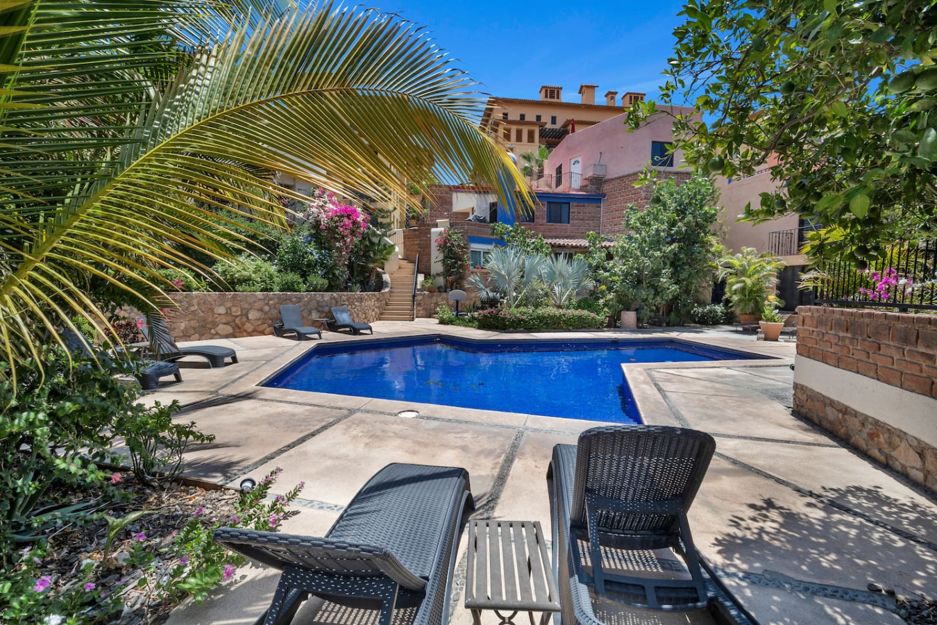 Discover this spacious and charming studio just steps from the Cabo Marina and Medano Beach, tucked behind The Hacienda Beach Club & Residences where villas rent from $650-$7,000 USD/Night. This exclusive, low-density enclave of Oro y Azul is sure to welcome travelers from all corners of the world. You'll be within walking distance of Médano Beach, the best beach in Cabo, as well as world-class dining, shopping, bars, and nightlife. This small complex is completely walled in with remote controlled entry and security gate.