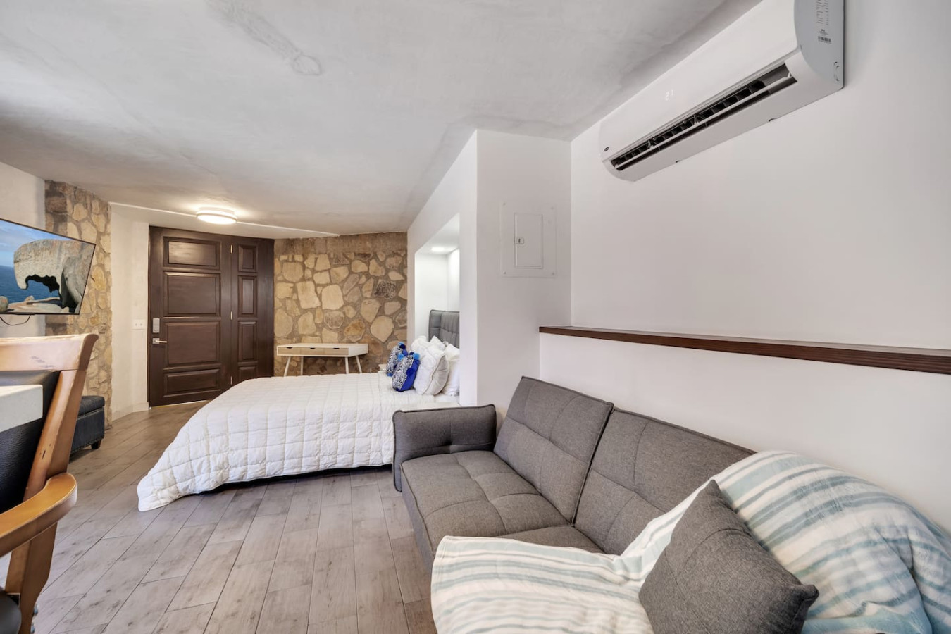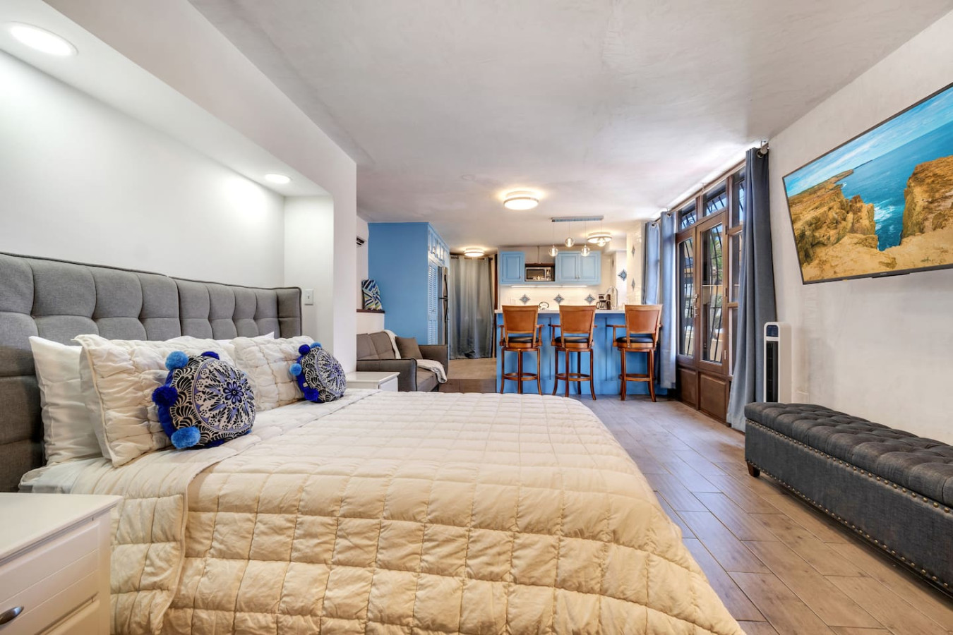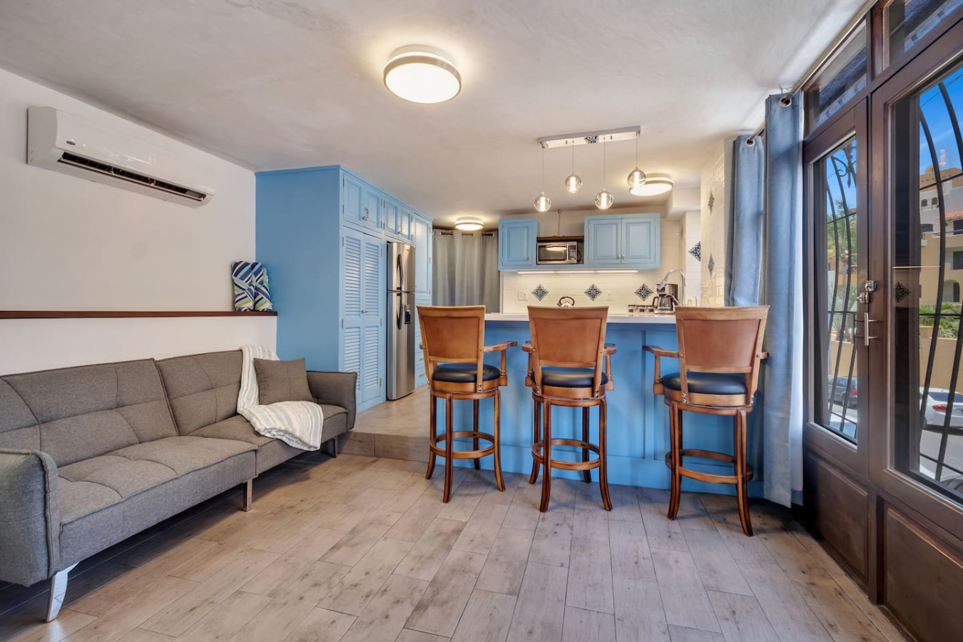 Discover this spacious and charming studio just steps from the Cabo Marina and Medano Beach, tucked behind The Hacienda Beach Club & Residences where villas rent from $650-$7,000 USD/Night. This exclusive, low-density enclave of Oro y Azul is sure to welcome travelers from all corners of the world. You'll be within walking distance of Médano Beach, the best beach in Cabo, as well as world-class dining, shopping, bars, and nightlife. This small complex is completely walled in with remote controlled entry and security gate.