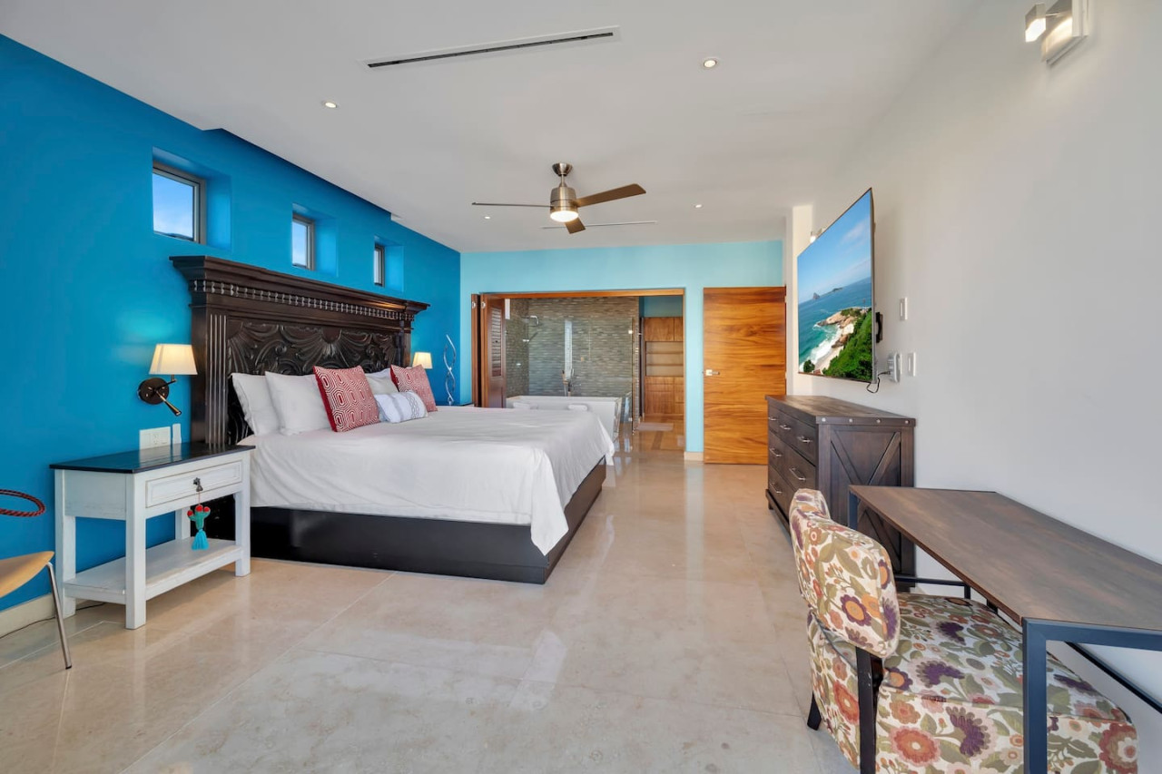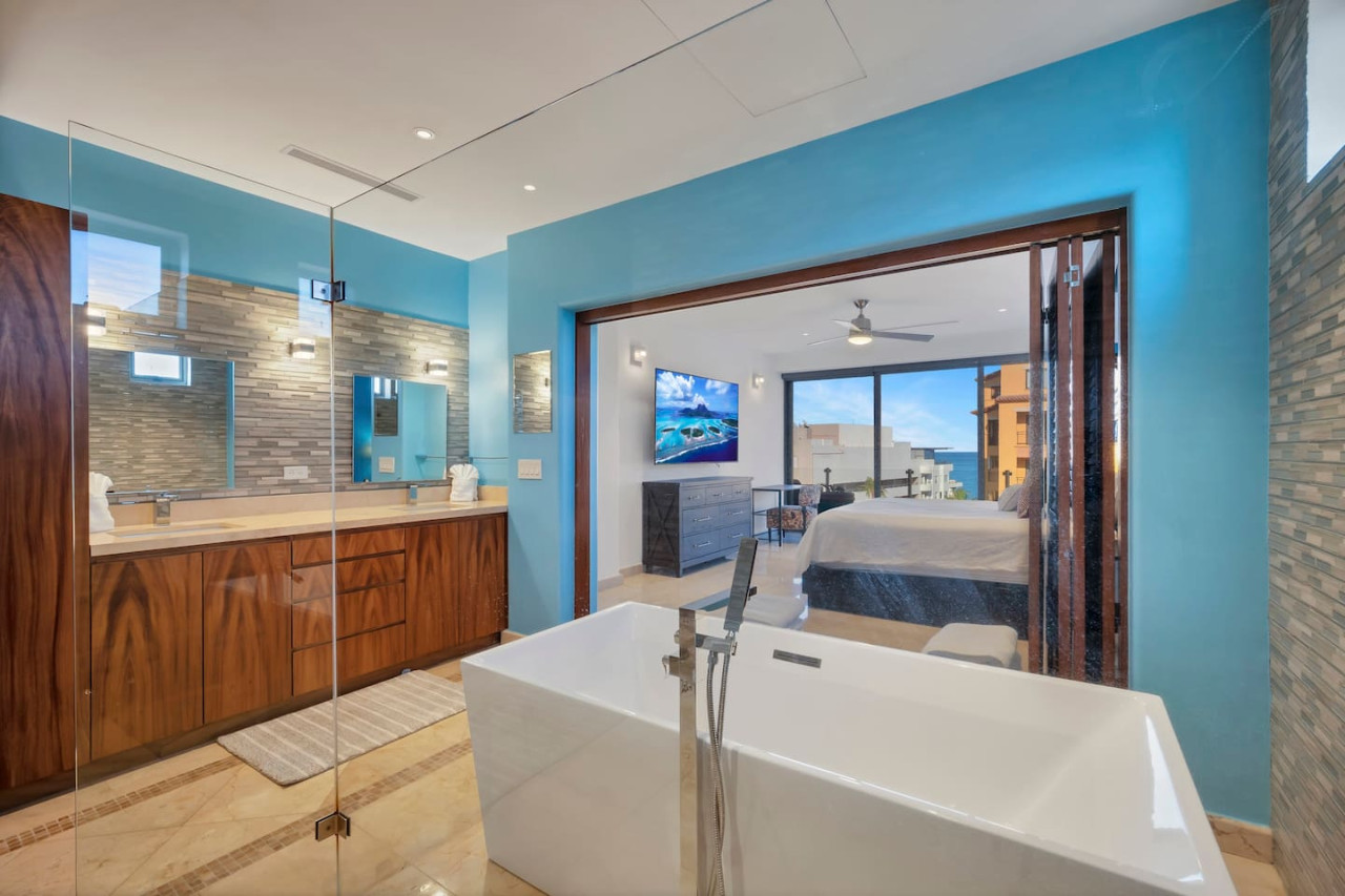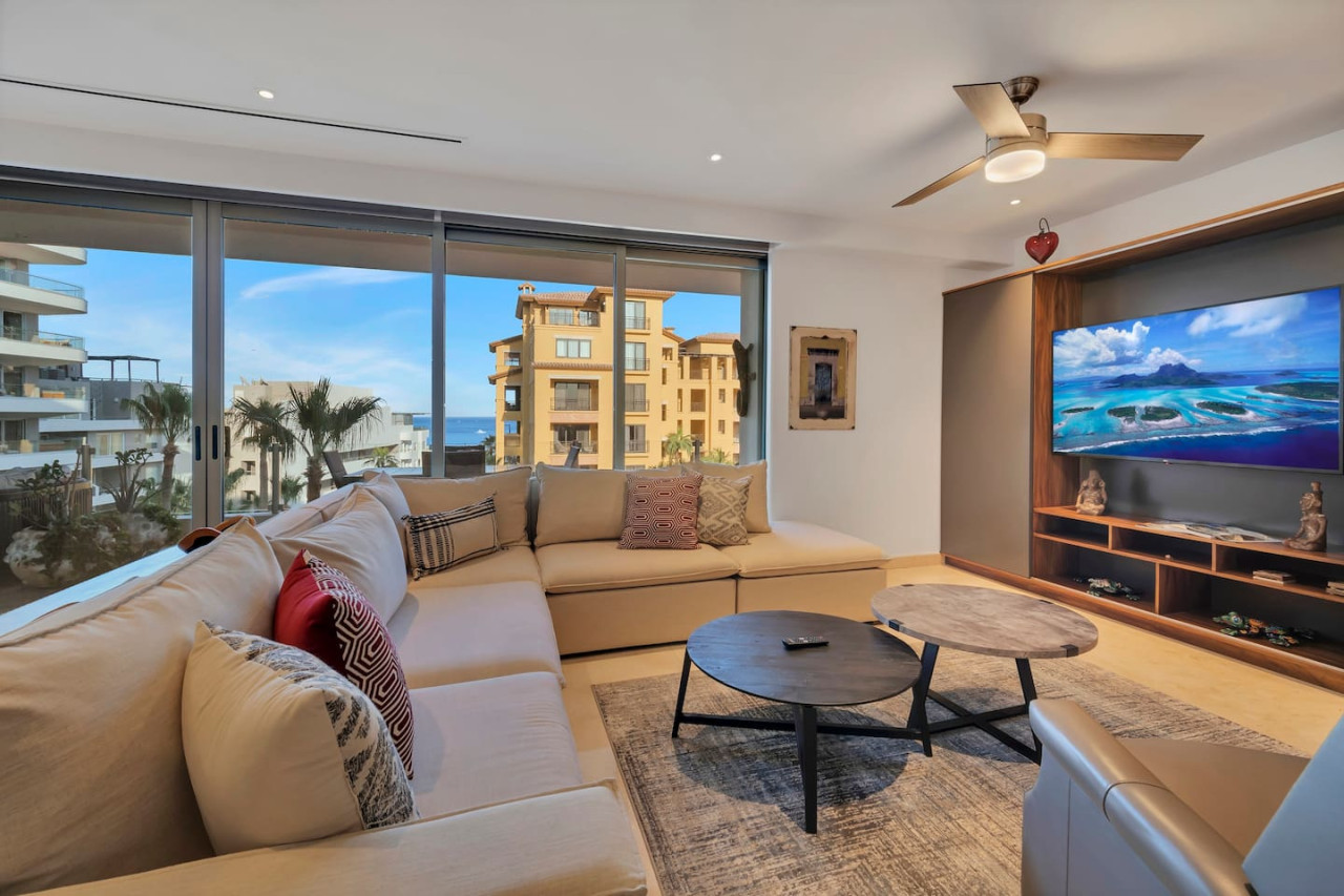 This Penthouse Style unit is located in a boutique building of 21 units in the heart of Medano Beach. This condo is situated on the right side of the 4th floor and is approximately 3,000 square feet of indoor/outdoor living space. There are 3 bedrooms in total with 2 kings and 1 queen, smart tv, luggage racks and individual thermostat. Enjoy gorgeous ocean views from the main and 2nd bedrooms. The 3rd bedroom has beautiful city views with a small balcony to view the city lights at night.