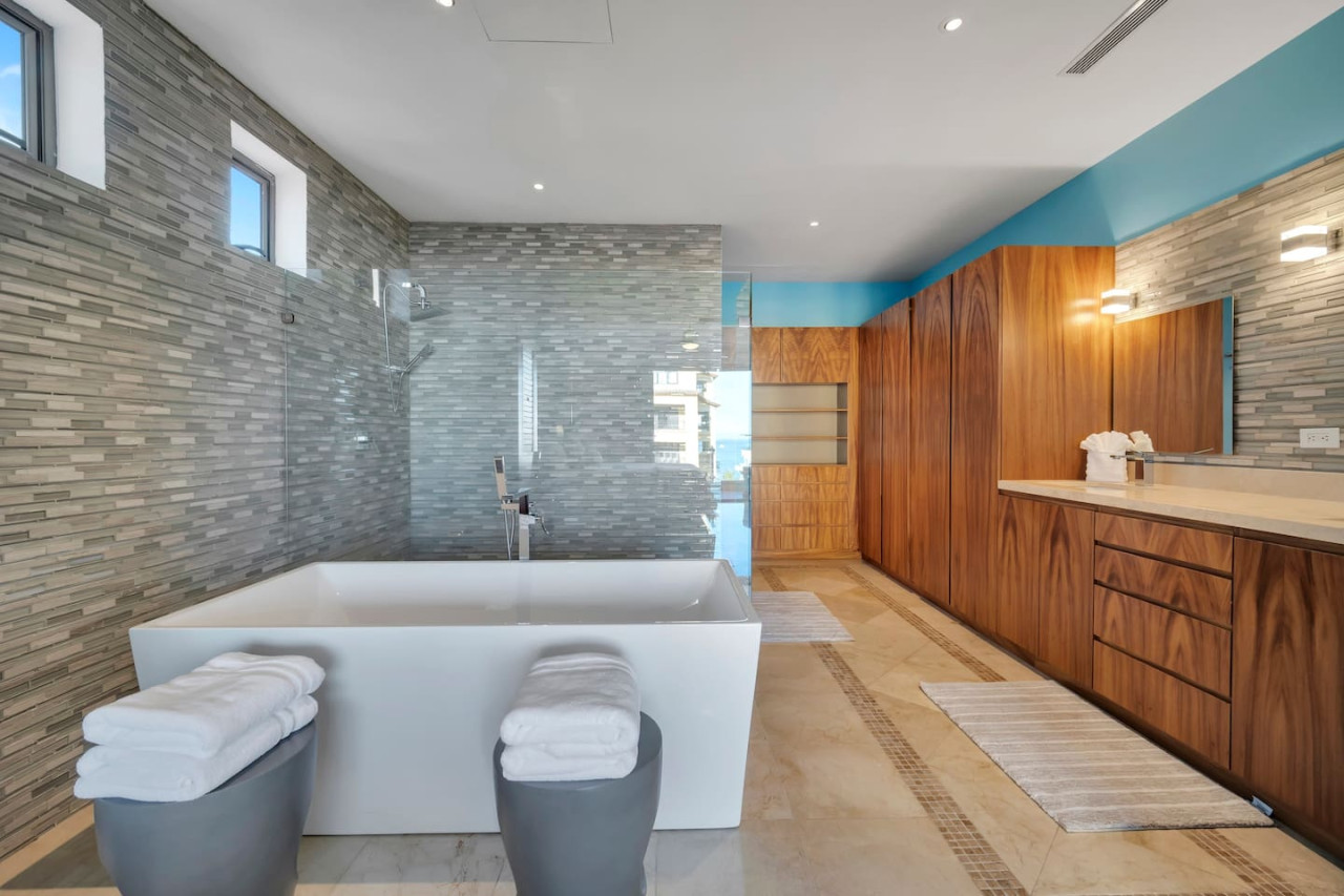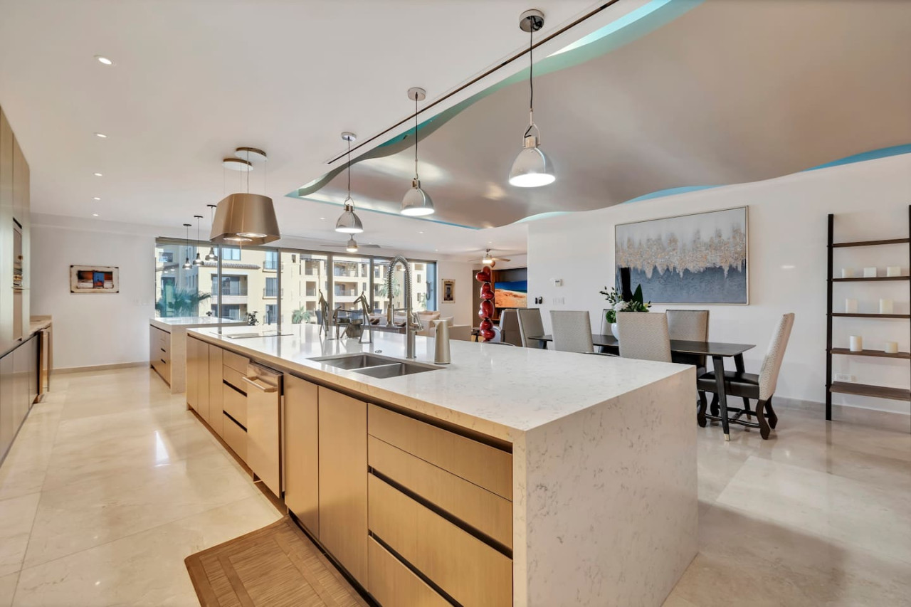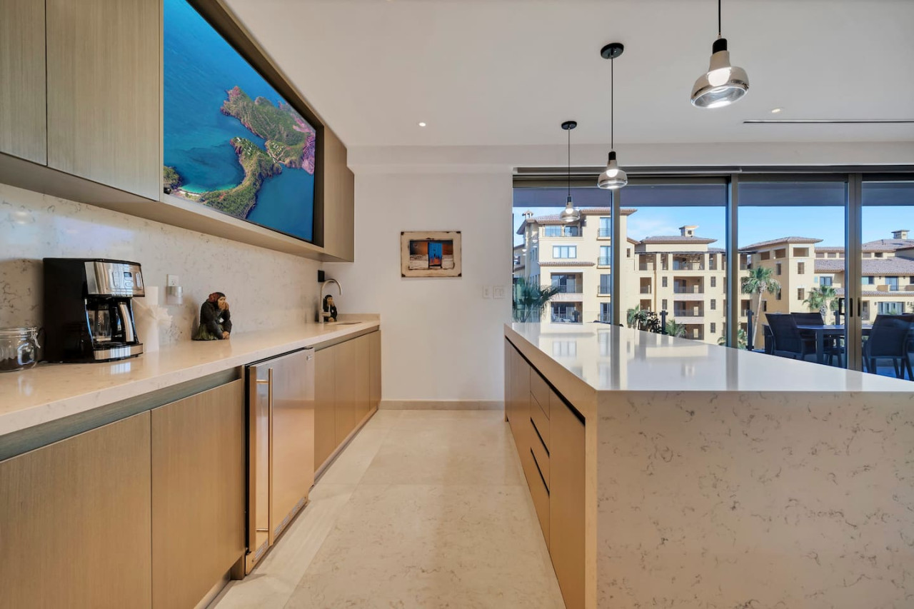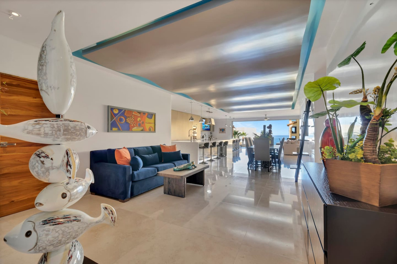 This newly remodeled 3BD/2.5BA 4th floor Penthouse style condo at One Medano Beach Resort is located 200 Meters from the best swimming beach in Cabo (Medano Beach) and across the street from the Puerto Paraiso Mall which is home to world class shops and restaurants. It is one block from the Marina and walking distance to everything in town. Just a short walk around the neighborhood you will find many grocery stores, restaurants, bars and a ton of beach activities.