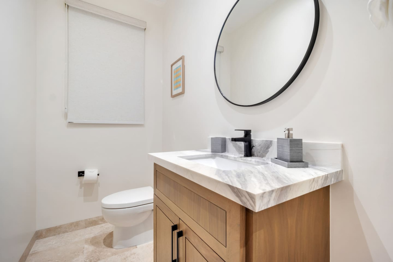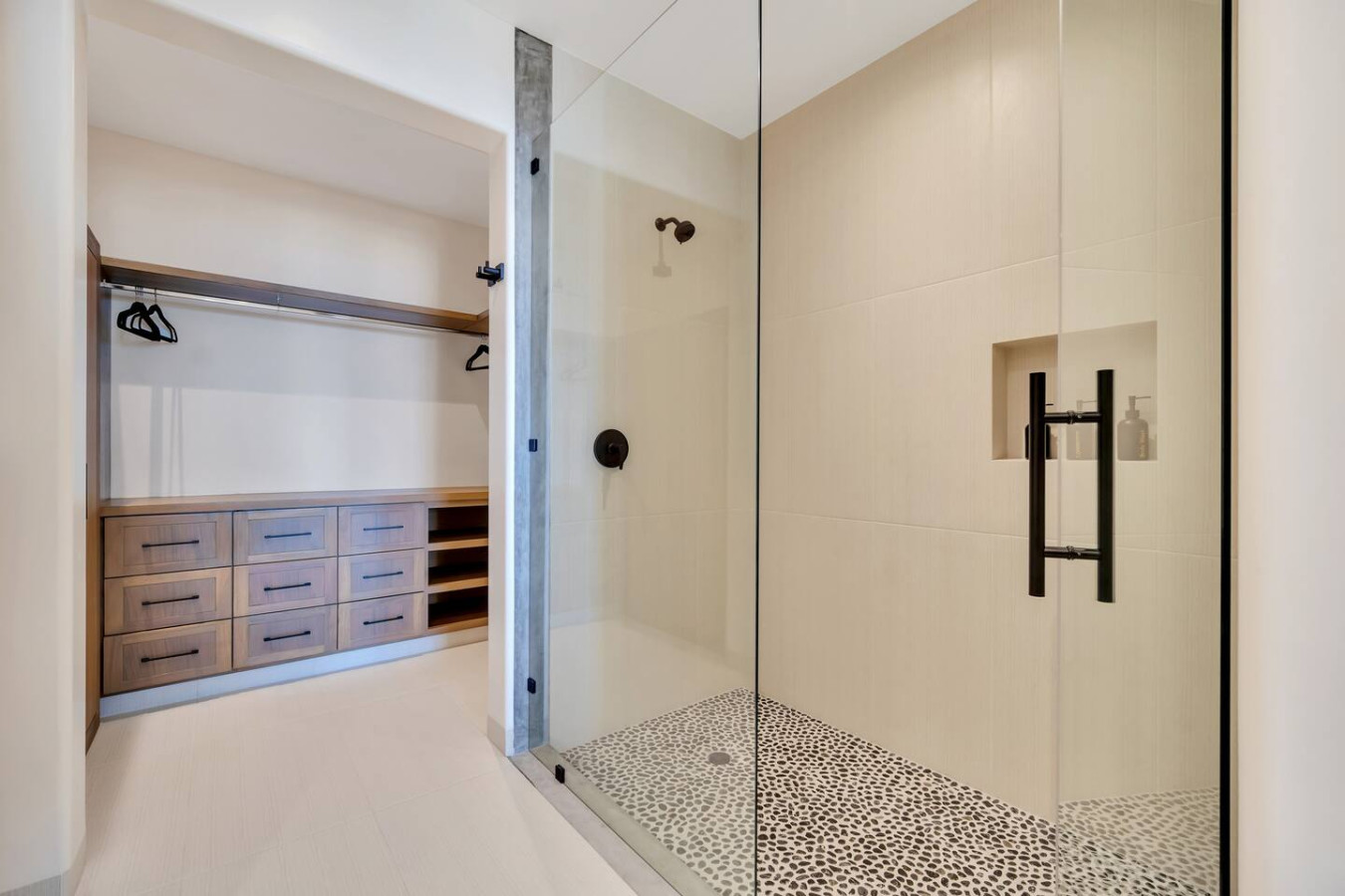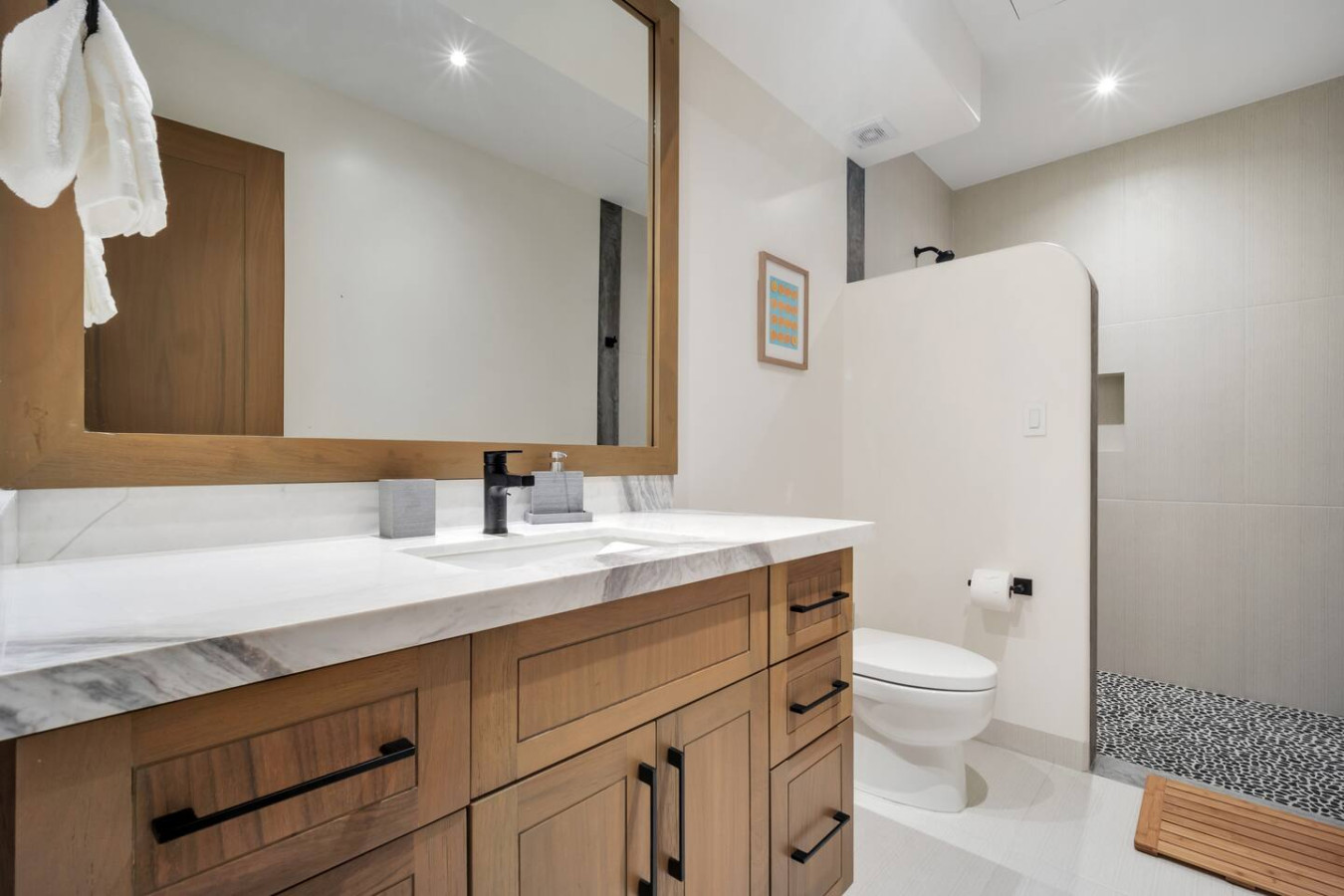 - Both bedrooms have attached bathrooms, along with a separate 1/2 bath for guests