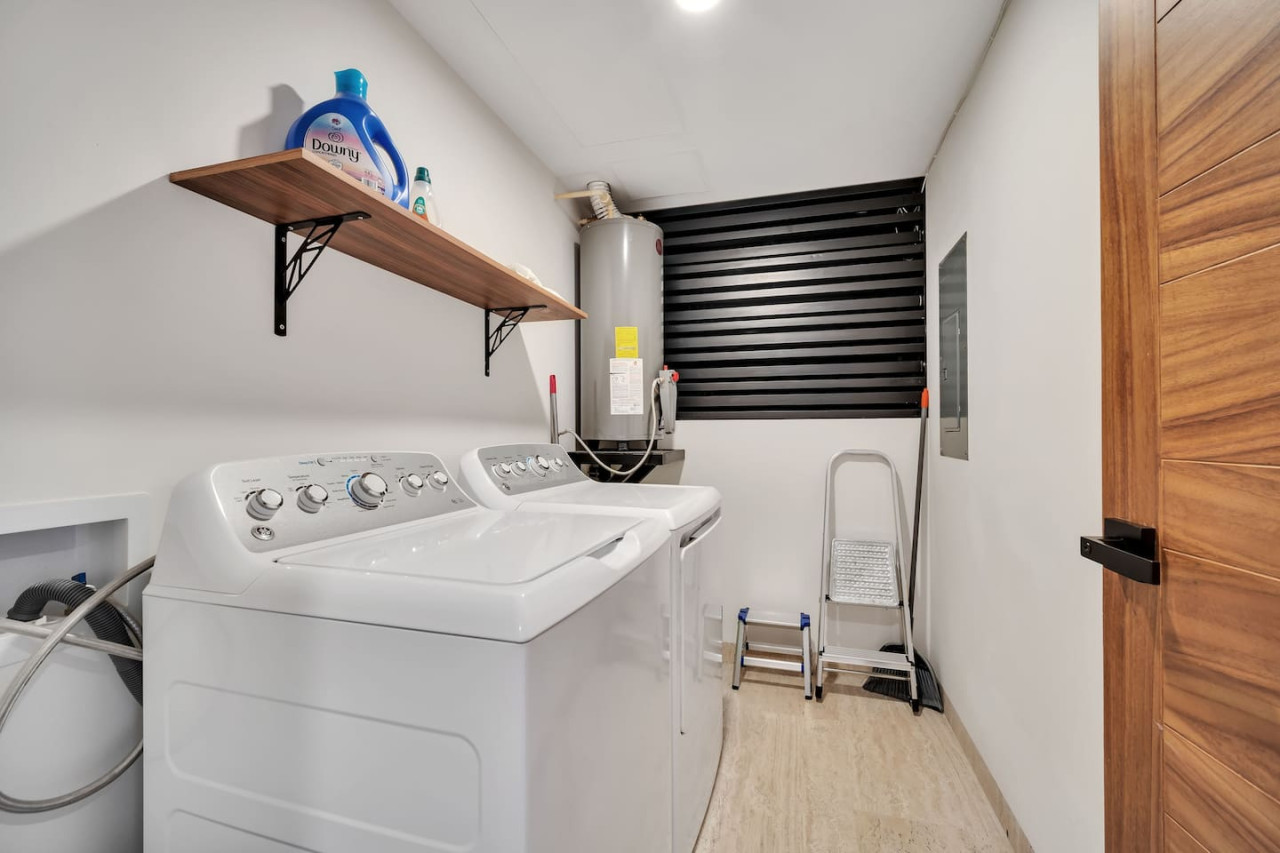 Water filtration throughout condo with 2 filters in the kitchen so no need to buy water. We encourage reusable water bottles.